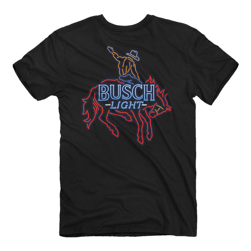 This Busch Light - Neon Cowboy T-Shirt is lightweight and super-soft. It features high-quality art on the back, and the iconic Busch Light logo on the front left chest.
